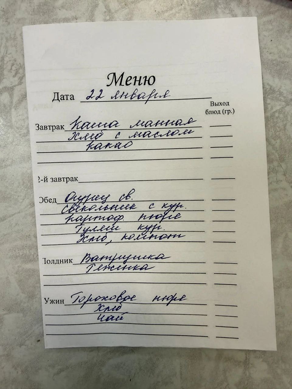 Ежедневное меню